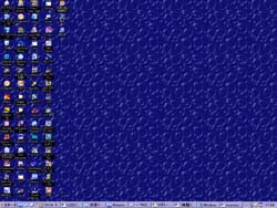 HDDを交換したら、元通りに組み立てなおします。これがまた大変なのですが、何とか乗り越えないと100GB shock(違)を体験できないばかりか、そもそも装置として使えなくなります。 艱難辛苦の末何とか組み立てて、リカバリDVDから環境のリカバリを行い、左のように無事起動すれば成功です(壁紙はあんまり気にしないでください(笑)) |